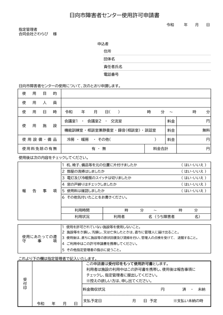 平素より日向市障がい者センターをご利用いただき、誠にありがとうございます。