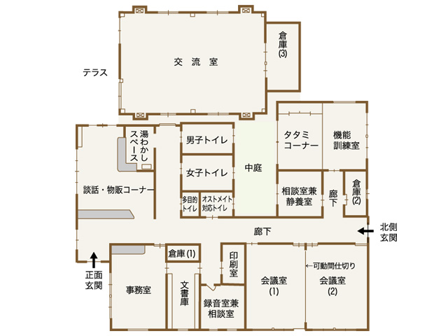 | 会議室1 | 41.25平方メートル | 相談室兼静養室 | 16.40平方メートル |