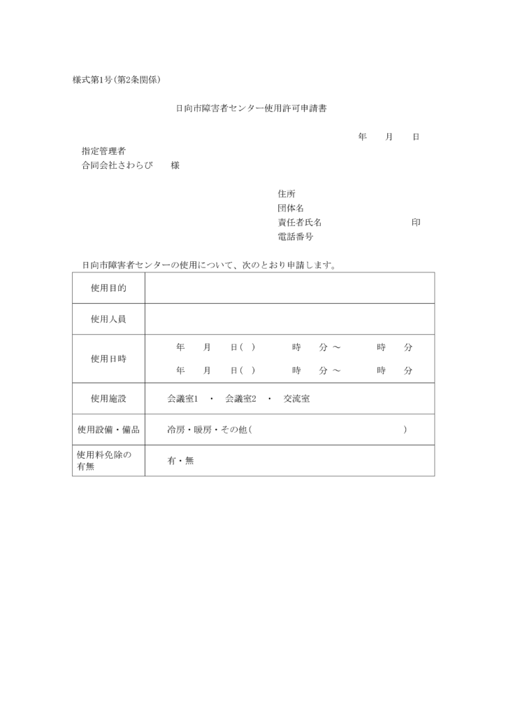 なお、障がい者団体(規則で定める市長が認める団体)が使用する場合は、使用料を減免します。